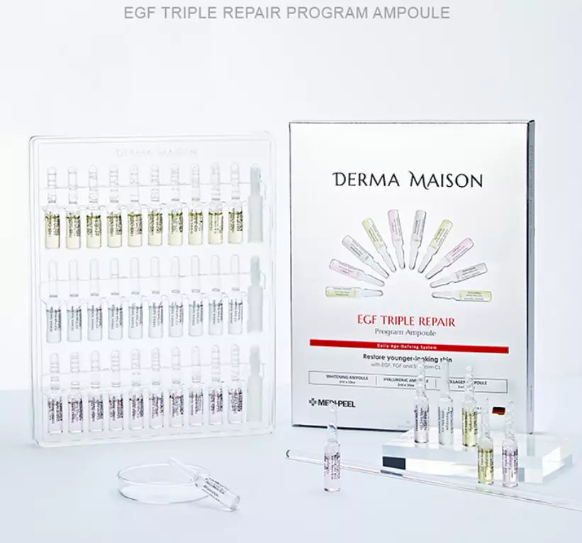 WHITENING AMPOULE: Water, Glycerin, Niacinamide, Oryza Sativa (Rice) Bran Water, Pentylene Glycol, Arbutin, Betaine,BetaGlucan, Polysorbate 80, Hydroxyethylcellulose, Allantoin, 1,2-Hexanediol, Caprylic/CapricTriglyceride,Bis-PEG-18 Methyl Ether Dimethyl Silane, Panthenol, Carbomer, Arginine, Alpha Arbutin, PhragmitesCommunisExtract, Poria Cocos Extract, Palmitoyl Pentapeptide-4, Polysorbate 20, Lecithin, ButyleneGlycol,PEG-60Hydrogenated Castor Oil, Sodium Hyaluronate, Hydrolyzed Sodium Hyaluronate, Hyaluronic Acid,SodiumHyaluronate Crosspolymer, Hydrolyzed Hyaluronic Acid, Glutathione, Centella Asiatica LeafWater,CentellaAsiatica Extract, Asiaticoside, Madecassic Acid, Asiatic Acid, Hydrogenated Phosphatidylcholine,SucroseStearate, rh-Oligopeptide-1(0.1 ppb), rh-Polypeptide-1(0.1 ppb), Ethylhexylglycerin, Guaiazulene,MethoxyPEG-18, BHT, Fragrance COLLAGEN AMPOULE:Water, Glycerin, Butylene Glycol, Methylpropanediol, Betaine, Beta-Glucan, Polyglutamic Acid,MelissaOfficinalis Leaf Extract, Caprylhydroxamic Acid, Sodium Chondroitin Sulfate, Tremella FuciformisPolysaccharide, Lactose, Erythritol, Dextrin, Allantoin, Propanediol, Polyglyceryl-10 Laurate,Bis-PEG-18Methyl Ether Dimethyl Silane, Panthenol, Xanthan Gum, 1,2-Hexanediol, Hydrolyzed Collagen(100ppm),Ethylhexylglycerin, Adenosine, Phragmites Communis Extract, Poria Cocos Extract, PalmitoylPentapeptide-4,Lecithin, Polysorbate 20, Sodium Hyaluronate, Hydrolyzed Sodium Hyaluronate, Hyaluronic Acid,SodiumHyaluronate Crosspolymer, Hydrolyzed Hyaluronic Acid, Centella Asiatica Leaf Water, CentellaAsiaticaExtract, Asiaticoside, Madecassic Acid, Asiatic Acid, Hydrogenated Phosphatidylcholine, SucroseStearate,rh-Oligopeptide-1(0.1 ppb), rh-Polypeptide-1(0.1 ppb), Methoxy PEG-18, BHT, Guaiazulene, Fragrance,CI42090, CI 16185 HYALURONIC AMPOULE: Water, Glycerin, Butylene Glycol, Methylpropanediol, Betaine, Polyglutamic Acid, Beta-Glucan,RehmanniaChinensis Root Extract, Coptis Japonica Extract, Melissa Officinalis Leaf Extract, CaprylhydroxamicAcid,Sodium Chondroitin Sulfate, Tremella Fuciformis Polysaccharide, Lactose, Erythritol, Dextrin,Allantoin,Propanediol, Polyglyceryl-10 Laurate, Bis-PEG-18 Methyl Ether Dimethyl Silane, PhragmitesCommunisExtract,Poria Cocos Extract, Palmitoyl Pentapeptide-4, Lecithin, Polysorbate 20, Xanthan Gum, 1,2-Hexanediol,Ethylhexylglycerin, Sodium Hyaluronate(1,010.2 ppm), Hydrolyzed Sodium Hyaluronate(100 ppb),HyaluronicAcid(100 ppb), Sodium Hyaluronate Crosspolymer(100 ppb), Hydrolyzed Hyaluronic Acid(100 ppb),rhOligopeptide-1(0.1 ppb), rh-Polypeptide-1(0.1 ppb), Centella Asiatica Leaf Water, CentellaAsiaticaExtract, Asiaticoside, Madecassic Acid, Asiatic Acid, Hydrogenated Phosphatidylcholine, SucroseStearate,